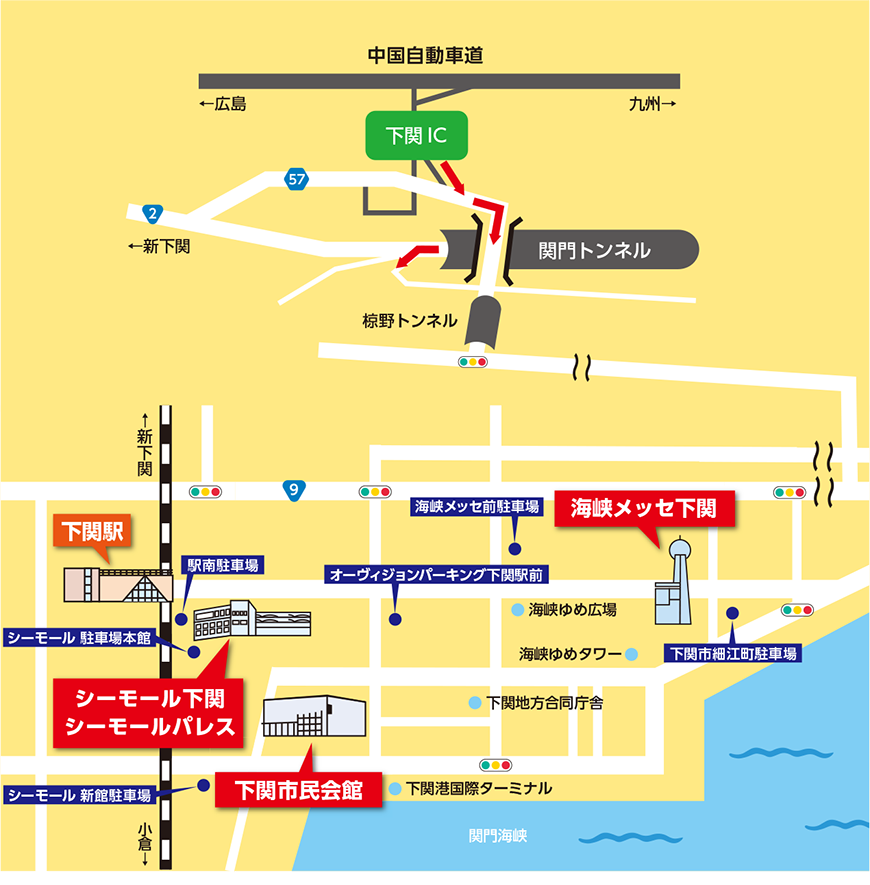 中国自動車道「下関IC」より車で15分(下関市街方面へ)